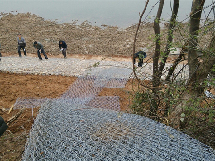 格賓網(wǎng)也稱重型六角網(wǎng)、擰花網(wǎng)、石籠網(wǎng)、三絞節(jié)機(jī)編網(wǎng)、雙絞格網(wǎng)是金屬線材編織的角形網(wǎng)(六角網(wǎng))制成的網(wǎng)箱,使用的金屬線徑是根據(jù)六角形的大小而不同.如果是金屬鍍層的金屬線六角形,則使用線徑為2.0mm到4.0mm的金屬線,如果是PVC包覆的金屬線編織的六角網(wǎng),則使用外徑為3.0mm到4.5mm的PVC(金屬)線.外框邊緣的線則使用比六角網(wǎng)線粗一號(hào)的線。格賓網(wǎng)是由經(jīng)表面防蝕處理的低碳鋼絲用機(jī)械編織的雙鉸六角形柔性金屬網(wǎng)經(jīng)剪裁,編邊和組合后制成的各種規(guī)格的網(wǎng)籠。