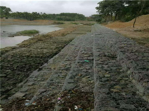 雷諾護(hù)墊是厚度在0.17-0.3m的網(wǎng)箱結(jié)構(gòu),在現(xiàn)場(chǎng)用于裝填石頭。主要用作河道、岸坡、路基邊坡護(hù)坡結(jié)構(gòu)。既可防止河岸遭水流、風(fēng)浪侵襲而破壞,又實(shí)現(xiàn)了水體與坡下土體間的自然對(duì)流交換功能,達(dá)到生態(tài)平衡。坡上植綠可增添景觀、綠化效果。