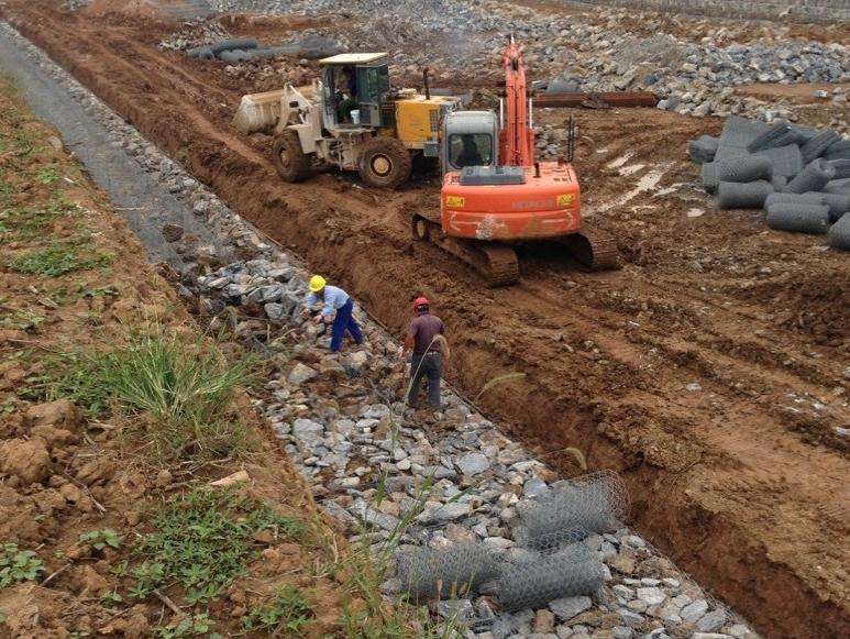 雷諾護墊采用以機編六邊形低碳鋼絲網(wǎng)面制成的網(wǎng)墊,在網(wǎng)墊內(nèi)填充合乎一定要求的石頭共同構成的防護結構。 一般的雷諾護墊的規(guī)格為0.15m-0.3m厚,2m寬,6m長。 雷諾護墊由隔板分成若干單元格,為了加強雷諾護墊結構的強度,所有的面板邊端均采用直徑更大的鋼絲。
