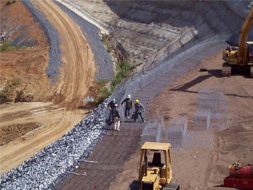 (一)格賓及雷諾護(hù)墊均是由特殊防腐處理的低碳鋼絲經(jīng)機(jī)器編織成的六邊形雙絞合鋼絲網(wǎng),在工廠做成符合工程要求的網(wǎng)箱結(jié)構(gòu),在施工現(xiàn)場用石料填充,其結(jié)構(gòu)具有柔性、透水性及整體性等特點(diǎn)。 (二)格賓及雷諾護(hù)墊內(nèi)部每間隔1米采用橫隔板隔成獨(dú)立的單元,根據(jù)施工現(xiàn)場情況組合使用;長度、寬度、高度公差±5%;網(wǎng)孔尺寸也可根據(jù)工程現(xiàn)場填充石料料場的實(shí)際粒徑大小與廠家商定,但填充石料的最小粒徑不得小于150px;格賓及雷諾護(hù)墊的外型尺寸也可根據(jù)工程,我們是生產(chǎn)廠家,可以根據(jù)客戶需求定制。 (三)鋼絲采用熱厚鍍鋅并覆塑方式防腐處理,具體指標(biāo)見格賓及雷諾護(hù)墊設(shè)計(jì)參數(shù)表。 (四)力學(xué)指標(biāo):網(wǎng)面抗拉強(qiáng)度為50KN/m,鋼絲的抗張強(qiáng)度應(yīng)在350-50N/m2之間,延伸率不能低于10%,符合EN1023-3標(biāo)準(zhǔn)。 (五)翻邊要求:網(wǎng)面裁剪后末端與邊緣鋼絲的連接處是整個(gè)結(jié)構(gòu)的薄弱環(huán)節(jié),為加強(qiáng)網(wǎng)面與邊緣鋼絲的連接強(qiáng)度,需采用專業(yè)的翻邊機(jī)將網(wǎng)面鋼絲纏繞在邊端鋼絲上≥2.5圈,不能采用手工絞。 (六)絞邊要求:鋼絲必須采用與網(wǎng)面鋼絲一樣材質(zhì)的鋼絲,為保證連接強(qiáng)度需嚴(yán)格按照間隔10~375px單圈-雙圈交替絞合。 (七)面網(wǎng)加強(qiáng)拉筋設(shè)置要求:為了避免面網(wǎng)受壓鼓出影響整體受力,必須在格賓及雷諾護(hù)墊的內(nèi)外兩片網(wǎng)板之間用3.2m的加強(qiáng)拉筋將內(nèi)外兩片網(wǎng)板拉緊綁扎一體。加強(qiáng)拉筋縱橫間距每625px一根,每平方米網(wǎng)板均勻布置9根。 (八)為防止風(fēng)浪或水流對岸坡地基的淘刷,應(yīng)在修整后的地基上鋪單位重200g/m2反濾無紡布,在反濾無紡布上鋪設(shè)格賓或雷諾護(hù)墊。 (九)將格賓或雷諾護(hù)墊網(wǎng)運(yùn)到施工現(xiàn)場后,在靠近安裝位置的平整場地上打開,將格賓或雷諾護(hù)墊置于平實(shí)的地面,壓實(shí)多余的折痕,應(yīng)避免損傷保護(hù)層。用綁扎鋼絲按設(shè)計(jì)要求將內(nèi)外面板、底板、隔板、端板進(jìn)行組裝成型,同時(shí)按第七條要求在內(nèi)外兩片網(wǎng)板之間安裝加強(qiáng)拉筋,以增強(qiáng)格賓或雷諾護(hù)墊的整體性和面層平整度。 (十)對相鄰格賓或雷諾護(hù)墊的上下四角用雙股組合鋼絲綁扎,四周框線每間隔625px綁扎一道,使相鄰格賓或雷諾護(hù)墊牢固連接共同受力。 (十一)填充石料時(shí)應(yīng)先填充一半高度(對雷諾護(hù)墊先填充一半厚度),用人工將石料擺放整齊,并用細(xì)石填縫密實(shí),再填充另一半,以保證箱體內(nèi)填充石料的密實(shí)和平整。為避免由于單邊裝填引起隔板變形,緊靠隔板兩邊的石頭必須同時(shí)進(jìn)行裝填。在斜坡上施工時(shí),應(yīng)從坡地向坡頂進(jìn)行裝填,并確保每個(gè)隔板的頂部都露出來,便于封口絞合。 (十二)對裸露的填充石料,表面用人工砌壘整平,讓石料間相互咬合,填充石料頂面應(yīng)預(yù)留75px的沉降高度。石料填充完畢后,用網(wǎng)蓋將格賓或雷諾護(hù)墊加蓋,并與內(nèi)外面板、端板、隔板牢固綁扎一體,四周封口綁扎間距以最小直徑的填充石料不漏出為宜,同時(shí)綁扎好內(nèi)外面網(wǎng)之間的加強(qiáng)拉筋,使組裝成型后的格賓或雷諾護(hù)墊邊緣整齊,表面飽滿平整,整體綁扎牢固,相鄰聯(lián)為一體。 (十三)填充石料要求:堅(jiān)硬無風(fēng)化、不易水解、不易碎的卵石或塊石。格賓填充石料粒徑以100-200m為宜。雷諾護(hù)墊填充石料粒徑以70-100m為宜。 (十四)格賓及雷諾護(hù)墊的安裝應(yīng)在專業(yè)廠家的指導(dǎo)下進(jìn)行。
