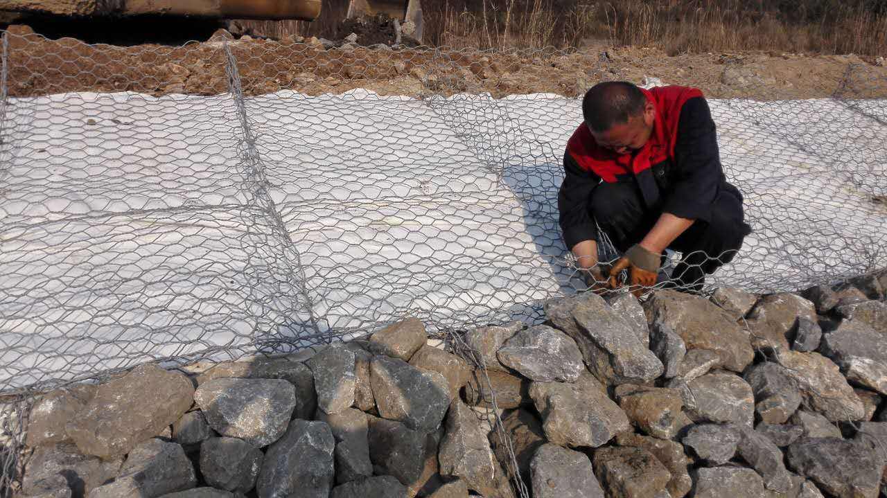 雷諾護(hù)墊是指由機(jī)編雙絞合六邊形金屬網(wǎng)面構(gòu)成的厚度遠(yuǎn)小于長度和寬度的墊形工程構(gòu)件,其中裝入塊石等填充料后連接成一體,成為主要用于水利堤防、岸坡、海曼等的防 沖刷結(jié)構(gòu),具有柔性、對地基適應(yīng)性的優(yōu)點。