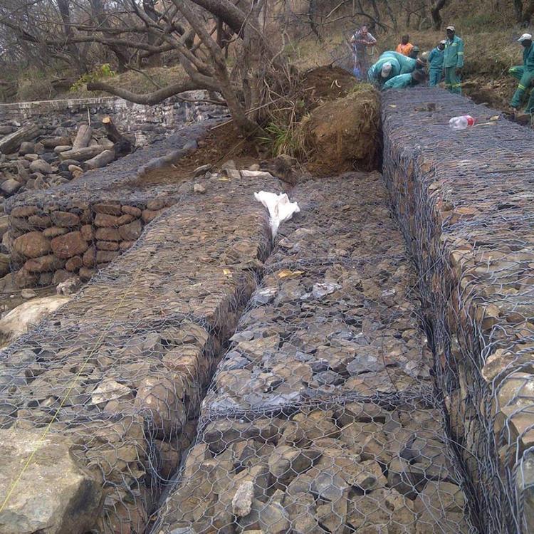 格賓網(wǎng)石籠防護工程技術(shù)是指由專用機械將涂塑或不涂塑(PVC樹脂)的熱鍍鋅鋁低碳鋼絲編織成格賓網(wǎng)片,然后將其裁剪、拼裝成符合設(shè)計要求的格賓網(wǎng)箱籠,用塊石等填滿后用于堤防、河岸、路基的防護。格賓網(wǎng)石籠防護屬于柔性防護工程,有利于保護河道、堤防岸坡的安全穩(wěn)定,可實現(xiàn)水土自然交換,增強水體自凈能力,同時又可以實現(xiàn)墻(坡)面植被綠化,使工程建筑與生態(tài)環(huán)境保護達到有機結(jié)合。