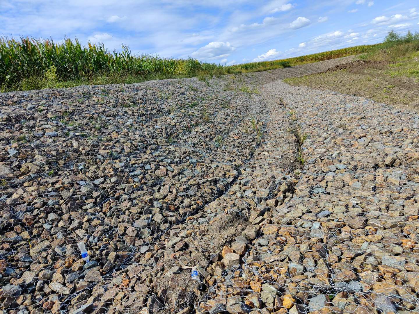 雷諾護(hù)墊也叫石籠護(hù)墊,格賓護(hù)墊,是指由機(jī)編雙絞合六邊形金屬網(wǎng)面構(gòu)成的厚度遠(yuǎn)小于長度和寬度的墊形工程構(gòu)件。雷諾護(hù)墊中裝入塊石等填充料后連接成一體,成為主要用于水利堤防、岸坡、海曼等的防沖刷結(jié)構(gòu),具有柔性、對地基適應(yīng)性的優(yōu)點(diǎn)。