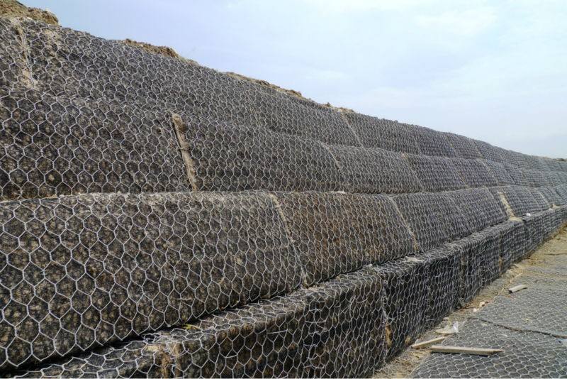 格賓網(wǎng)也稱重型六角網(wǎng)、擰花網(wǎng)、石籠網(wǎng)、三絞節(jié)機編網(wǎng)、雙絞格網(wǎng)是金屬線材編織的角形網(wǎng)(六角網(wǎng))制成的網(wǎng)箱,使用的金屬線徑是根據(jù)六角形的大小而不同.如果是金屬鍍層的金屬線六角形,則使用線徑為2.0mm到4.0mm的金屬線,如果是PVC包覆的金屬線編織的六角網(wǎng),則使用外徑為3.0mm到4.5mm的PVC(金屬)線.外框邊緣的線則使用比六角網(wǎng)線粗一號的線。格賓網(wǎng)是由經(jīng)表面防蝕處理的低碳鋼絲用機械編織的雙鉸六角形柔性金屬網(wǎng)經(jīng)剪裁,編邊和組合后制成的各種規(guī)格的網(wǎng)籠。