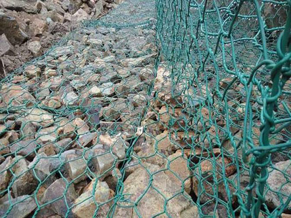 通常包塑石籠網(wǎng)在鋅-5%鋁-混合稀土鋼絲的表面包一層pvc保護(hù)層,再編織成各種規(guī)格的六角網(wǎng)。這層pvc保護(hù)層將會(huì)大大增加網(wǎng)的使用壽命,并且通過不同顏色的選擇,使其能和周圍的自然環(huán)境相融合。