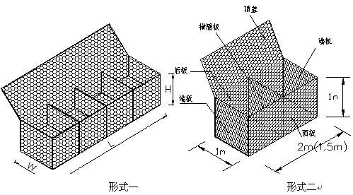 格賓網(wǎng)箱 它是由重型六角網(wǎng)剪裁、折疊加工而成的鐵絲網(wǎng)箱籠,一般由4片重型六角網(wǎng)折疊組裝成的網(wǎng)箱,一片大的六角網(wǎng)折疊成長方體的4個大面,兩頭有兩小片的六角網(wǎng),中間有隔板網(wǎng)片。