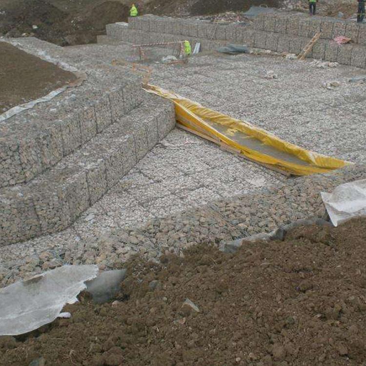 石籠網(wǎng)由高抗腐蝕、高強度、具有延展性的低碳鋼絲或者包覆PVC的以上鋼絲使用機械編織而成,使用該網(wǎng)制作而成的箱型結(jié)構(gòu)就是石籠。根據(jù)ASTM和EN標(biāo)準(zhǔn),所使用的低碳鋼絲直徑根據(jù)工程設(shè)計要求而不同。一般介于2.0-4.0mm之間,石籠網(wǎng)鋼絲的抗拉強度不少于38kg/m2,金屬鍍層重量一般高于245g/m2,石籠網(wǎng)片的邊緣線直徑一般要大于網(wǎng)線直徑。其雙線絞合部分的長度不得小于50mm.以保證絞合部分鋼絲的金屬鍍層和PVC鍍層不受破壞。