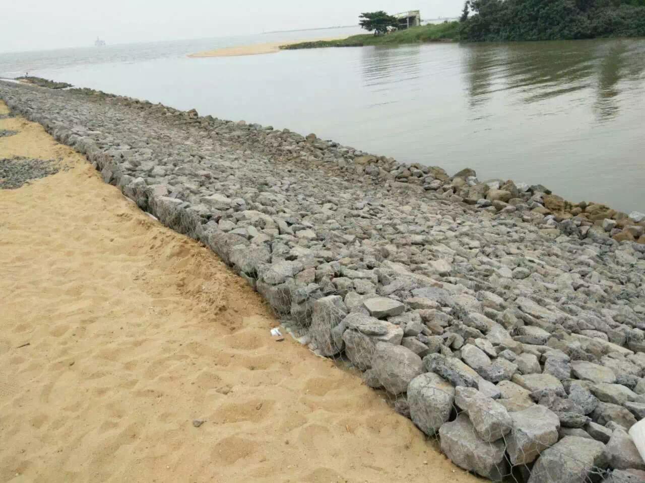 (2)耐久性:加上硬質(zhì)石塊的機(jī)編六邊形低碳鋼絲網(wǎng)面形成一個(gè)大的耐久性強(qiáng)的整體。