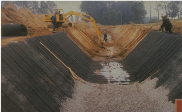 6.加筋麥克墊不得直接鋪設(shè)在碎石等堅(jiān)硬的下承層上。應(yīng)在土工合成材料和碎石之間鋪設(shè)5cm厚的中、粗砂保護(hù)層。