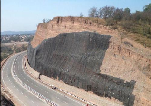 4.加筋麥克墊鋪設(shè)時,必須拉緊展平插釘固定,并應(yīng)與路基面密貼不得有褶皺扭曲。