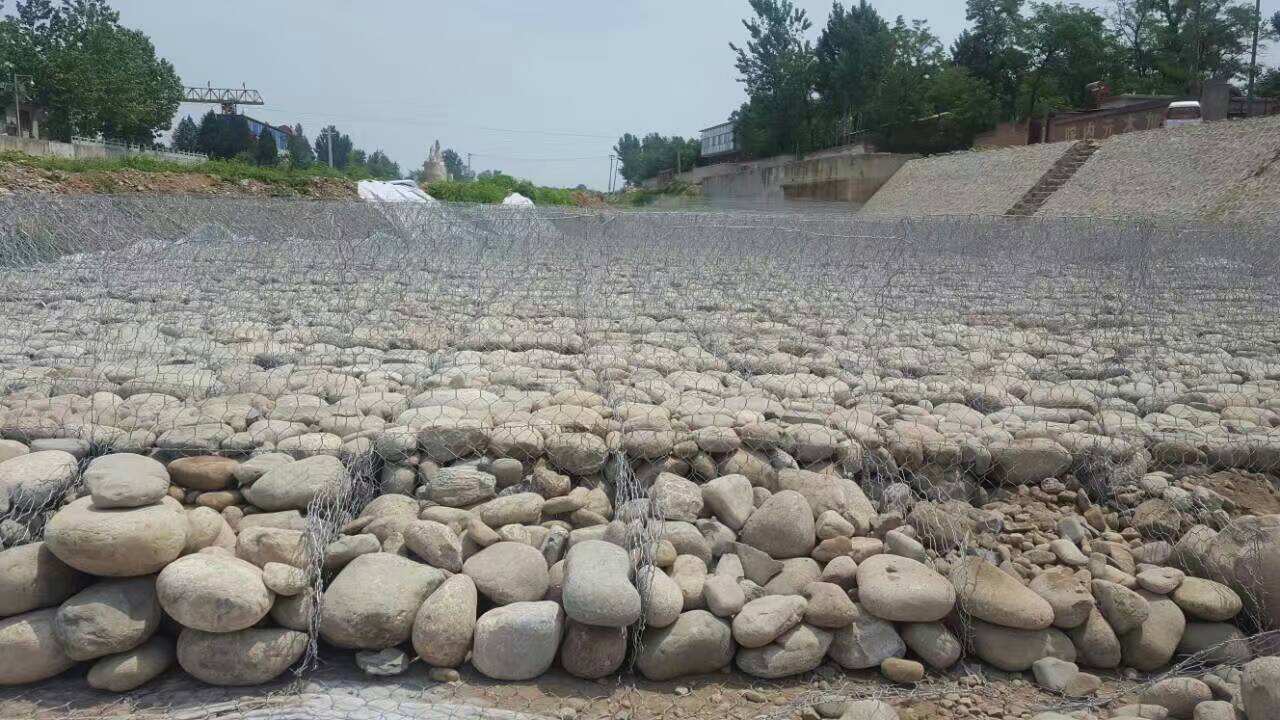 雷諾護墊采用以機編六邊形低碳鋼絲網(wǎng)面制成的網(wǎng)墊,在網(wǎng)墊內(nèi)填充合乎一定要求的石頭共同構(gòu)成的防護結(jié)構(gòu)。 一般的雷諾護墊的規(guī)格為0.15m-0.3m厚,2m寬,6m長。 雷諾護墊由隔板分成若干單元格,為了加強雷諾護墊結(jié)構(gòu)的強度,所有的面板邊端均采用直徑更大的鋼絲。