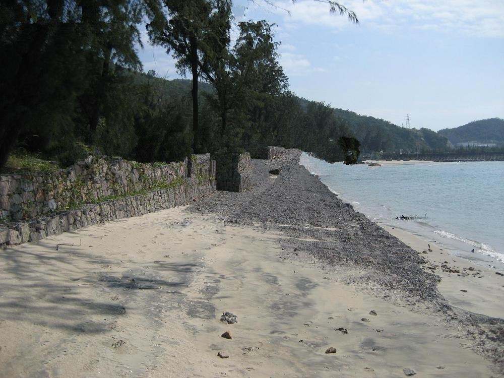 2適應(yīng)不同的地基條件。由于構(gòu)成綠濱墊防護(hù)體的鋼絲具有一定的抗拉強(qiáng)度,不易被拉斷,填充料之間又充滿了空隙,具有一定的適應(yīng)變形的能力。當(dāng)?shù)鼗闆r發(fā)生變化時,如發(fā)生不均勻沉降、地震等,箱內(nèi)填充料受箱籠的約束不會跑到箱籠外,而會自行調(diào)整形成新的平衡;又因箱籠系柔性結(jié)構(gòu),因此,防護(hù)工程外表可能會發(fā)生小的變異,但不會發(fā)生裂縫、網(wǎng)箱被拉斷從而造成防護(hù)體被破壞的現(xiàn)象。
