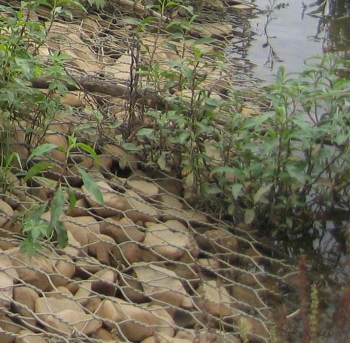 格賓結(jié)構(gòu)內(nèi)存在較多的填石孔隙,可以實(shí)現(xiàn)河水和結(jié)構(gòu)后土地的自然交換,增強(qiáng)水體的自凈能力,改善水質(zhì);格賓護(hù)墊由具有優(yōu)良防腐性能的鋼絲機(jī)編組裝而成,優(yōu)良的鍍層工藝和編織技術(shù),保證了鍍層厚度的均勻性和抗腐蝕性。