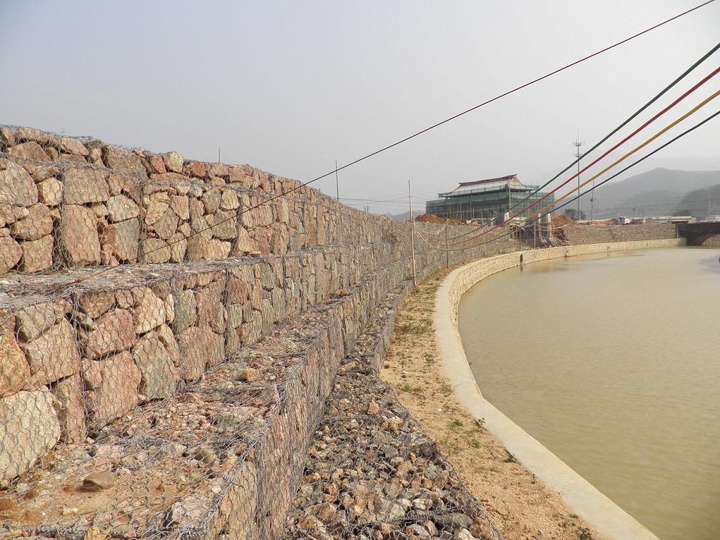 河堤,這樣減輕對(duì)河堤的損害。 在網(wǎng)箱上面,鋪撒一層土,可以生長草;自然也會(huì)沉降塵土,自然生長雜草等。 石籠網(wǎng)也可以用于引導(dǎo)河流水,河流一般會(huì)順著固有的河槽流動(dòng),河道可能有自然形成的彎曲的河道,如果發(fā)生洪水,水量巨大,水流湍急,水流會(huì)在慣性下,趨于直向流動(dòng),會(huì)猛烈地沖擊原來的河槽和堤壩,有可能使河流改道,那樣將造成巨大的災(zāi)難。