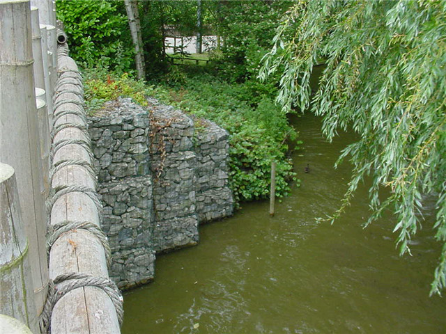 河堤,這樣減輕對河堤的損害。 在網箱上面,鋪撒一層土,可以生長草;自然也會沉降塵土,自然生長雜草等。 石籠網也可以用于引導河流水,河流一般會順著固有的河槽流動,河道可能有自然形成的彎曲的河道,如果發(fā)生洪水,水量巨大,水流湍急,水流會在慣性下,趨于直向流動,會猛烈地沖擊原來的河槽和堤壩,有可能使河流改道,那樣將造成巨大的災難。