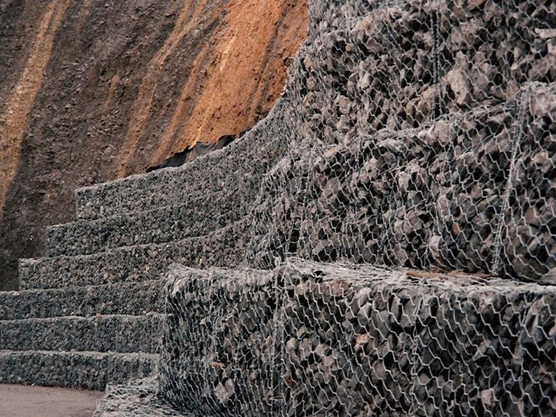 石籠網(wǎng)箱在施工現(xiàn)場經(jīng)石頭填充,構(gòu)成具有柔性、透水性及整體性的結(jié)構(gòu), 如擋墻、河道襯砌、堰等支擋的防沖蝕工程。